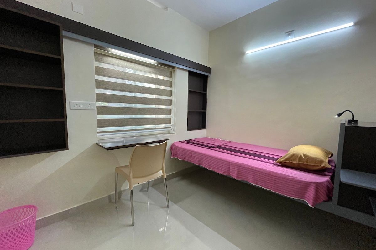 Our non-AC single rooms come with shared bathroom facilities. Each room has modern furnishing, including a desk and chair, to ensure a comfortable stay.